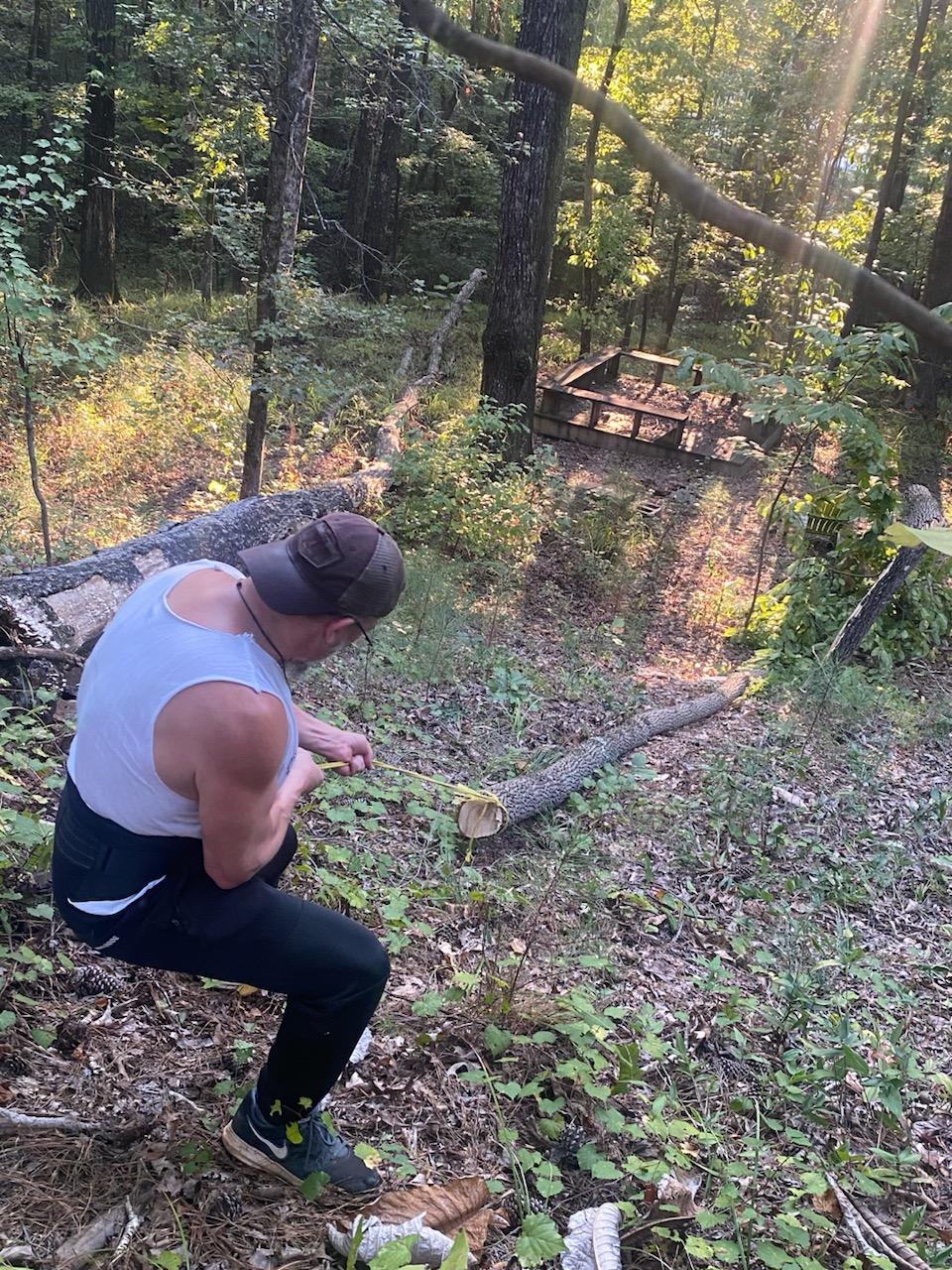 Last night, after completing a full-body workout consisting of front squats, kettlebell cleans, bench presses, chins, and barbell curls—a pretty good workout in itself—I decided to do something that my girlfriend, Kandy, called “crazy.” During a storm last week, a hickory tree fell on my property at the bottom of a very steep hill, so I decided to cut a 20-foot piece of it and see if I could drag it up the hill. “I don’t think that’s possible,” Kandy said. “It’s just going to be too difficult.”